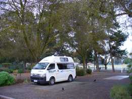 Mount Gambier - Big 4 - Blue Lake Holiday Park Bay Road, Richtung Kraterseen – Blue Lake -, Mount Gambier, South Australia Telefon: 1 800 676 028 oder 08 – 8725 9856 (» Infos im Internet) Der Campingplatz liegt zwei Kilometer südlich des Stadtzentrums zwischen zwei Kraterseen. Er ist parkähnlich gestaltet und großzügig angelegt. Insgesamt war es ein freundlicher Platz mit sauberen sanitären Anlagen. Die Stellplätze für Wohnmobile haben einen zementierten Vorplatz gegen Dreck und sind von Rasenflächen umgeben. Sanitäre Einrichtungen: Sauber und gepflegt 24 Aus-$ für einen Stellplatz mit Strom |