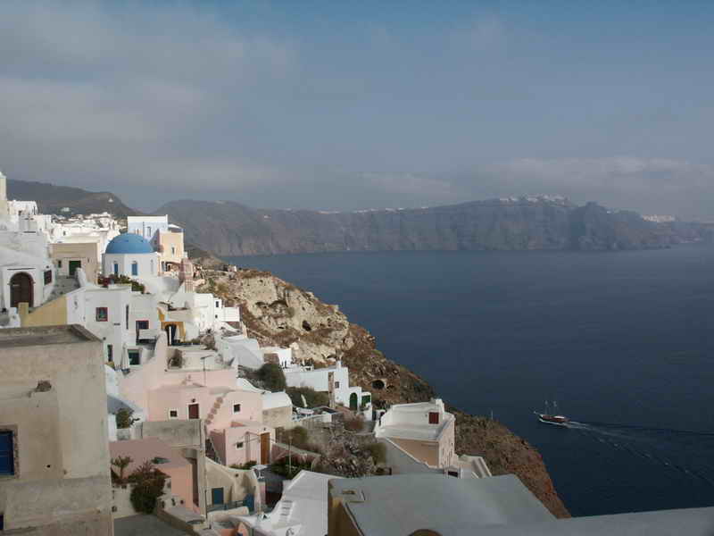 - ... » Fira, dem weißen Häusemeer an der Abbruchkante des Kraters. Im Ortskern ein autofreies Labyrinth von Shops, Restaurants, Cafes und sündhaft teuren Hotels. Geniessen kann man den überwältigen Panoramablick über die Caldera und den Blick auf den Irrgarten von Terassen, Wänden, Treppen und Kirchenkuppeln am schwarzen Kraterrand.