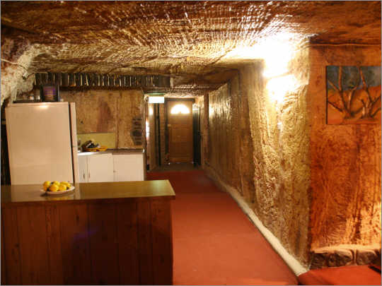 Die Tour wurde durch eine Besichtigung der Umoona Opal Mine & Museum abgerundet. Die aufgegebene Mine wird heute als Museum genutzt und ist mitten in der Innenstadt. Es gab einen gutgemachten Film über Coober Pedy, wie alles anfing und das Opal-Suchen generell. Zusätzlich wurden uns alte Stollen und eine ehemalige Wohnhöhle gezeigt. Wenn ich nicht wüsste, das das alles mehrere Meter unter der Erde ist, könnte so eine Höhle richtig gemütlich sein. Die uns gezeigte, hatte gerade Wände, eine grosse Grundfläche, mehrere Zimmer und war, außer das sie unter der Erde lag und die Wände aus Fels waren, in nichts von einer normalen Wohnung zu unterscheiden. Im Gegenteil gerade die Struktur des Felsens hatte ihren eigenen Charme.