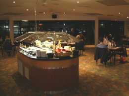 Kingscote, Kangaroo Island - Ozone Hotel Kingscote Terrace, direkt an der Wasserfront, Kingscote, Kangaroo Island, South Australia Telefon: 1 800 083 133 oder (08) 8553 2011 (» Infos im Internet) Im Ozone drängelten sich die Leute ab 18 Uhr zum Bestellen. Das war anscheinend nicht nur für mich der Platz, wo alles zum Essen hinging. Nach der Bestellung an der Theke bekommt jeder einen Pieper, der lautstark verkündete, wann das fertige Essen abholt werden kann. Ich hatte ein Känguru-Filet mit Süßwasser-Kartoffel-Rösti, dazu Gemüse und Salat von der Veggie-Bar bis zum Abwinken. Es hat klasse geschmeckt. |