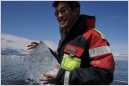 Highlight unserer Tour war, dass vor unseren Augen ein Eisberg kippte. Er drehte sich langsam um 90 Grad und zeigte uns den lange verborgenen Teil seines unteren Eisberg-Teils. Das ging alles ohne viel Wellenbewegung und Dramatik von sich, er rutschte zur Seite, verursachte einen sanften Plumps und lag auf einmal auf der Seite. Der Kapitän hatte seine eigene Kamera am Ruder liegen, stieg hoch, lenkte das Schiff mit den Füssen, stand in der Luke über ihm und fotografierte wie wild. Umkippen von Eisbergen passiert so circa 200 Mal im Jahr und auch für die Crew war es etwas Außergewöhnliches.